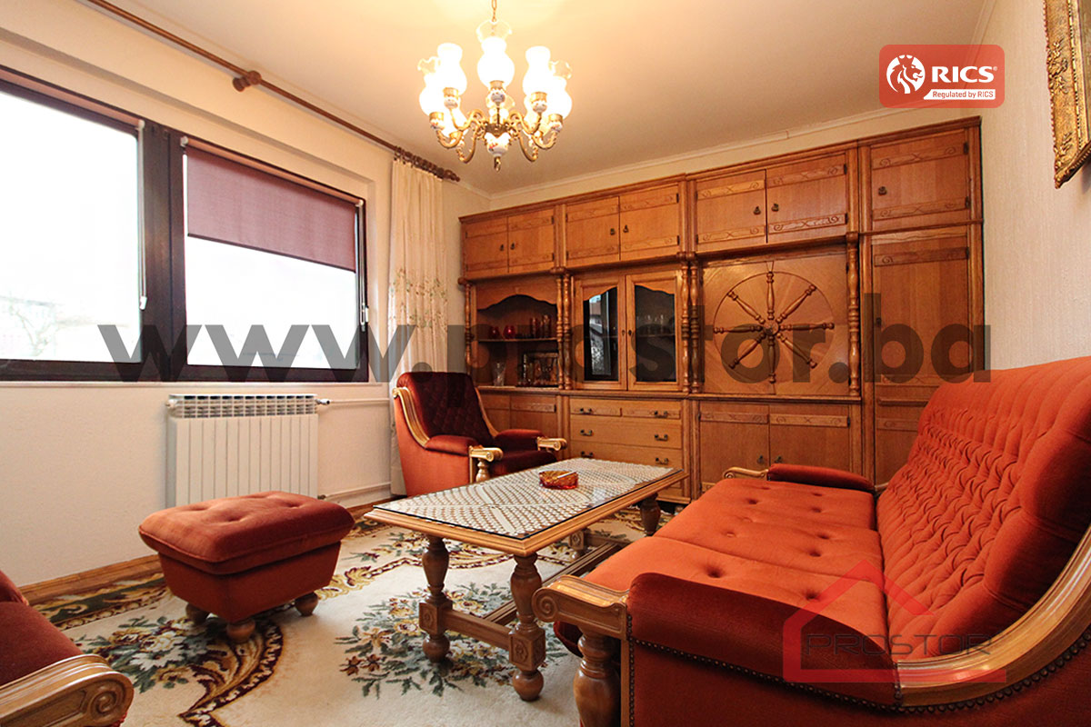 Sadržaj: Dnevni boravak, dvije kuhinje, kupatilo, tri spavaće sobe, ostava, terasa i predsoblje.
