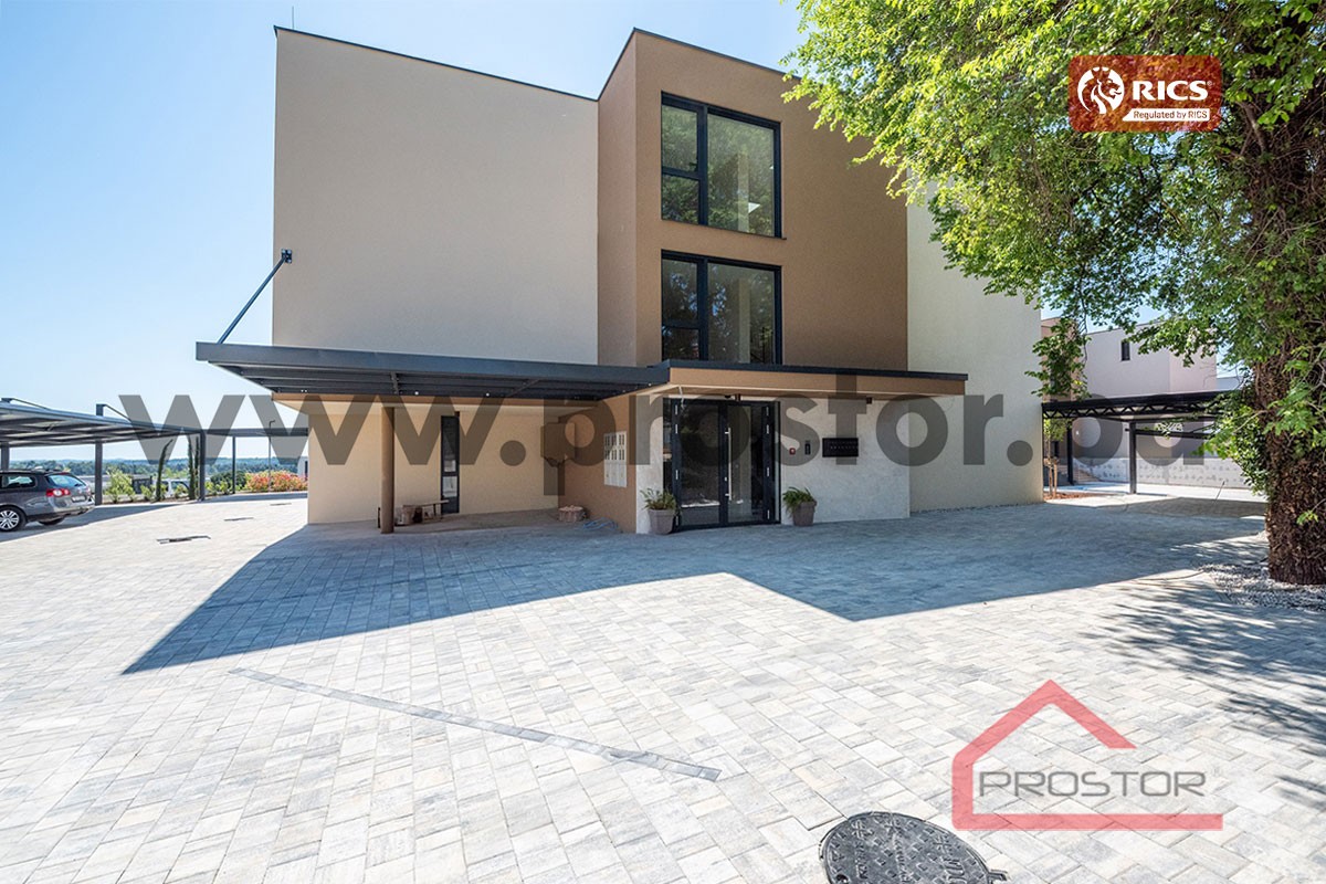 Stambena površina ovog apartmana bez terase iznosi 77,10 m2, dok je površina terase 10,68 m2. Uz apartman se kupuje i ostava i parking mjesto, tako da je ukupna netto površina svih etažnih djelova 94,05 m2.