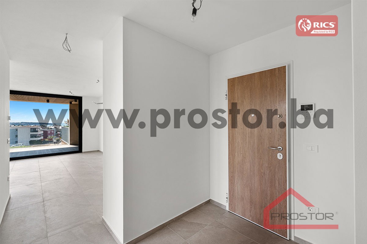 Apartman koji je predmet prodaje nalazi se na prvom spratu, dvostrane je orjentacije te se dispozitivno sastoji od dnevnog boravka s kuhinjom i trpezarijom, dvije komforne spavaće sobe (od kojih je jedna master spavaća soba sa vlastitim kupatilom i garderoberom) kupatila, ostave, hodnika te velike terase s koje se pruža otvoren pogled prema moru.