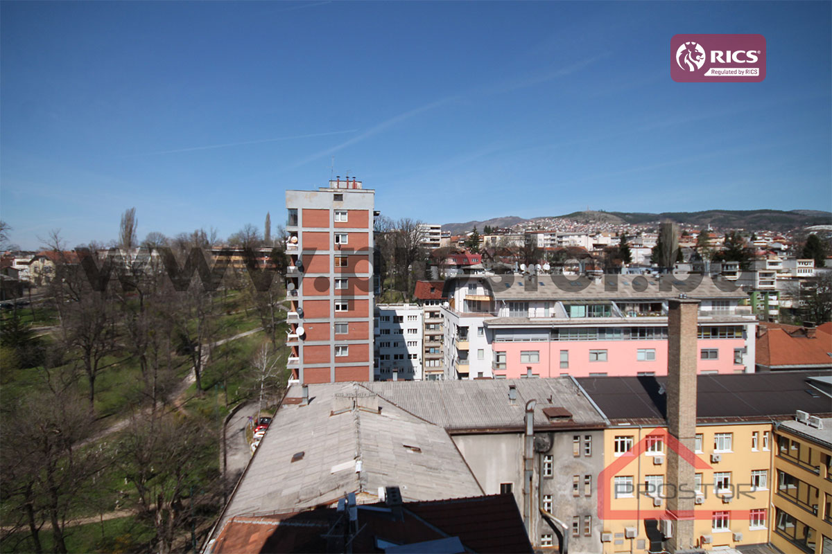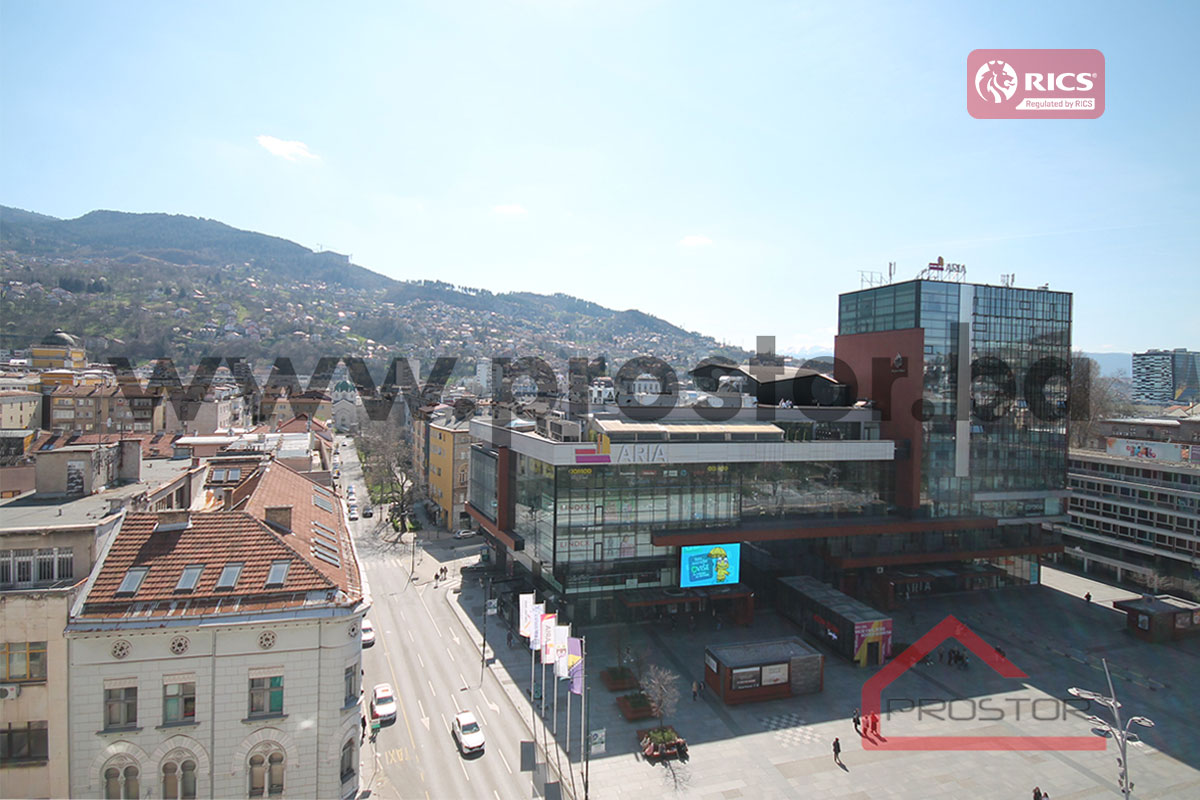 LOKACIJA Stan se nalazi na osmom spratu stambene zgrade u ulici Maršala Tita preko puta Aria Mall-a i u blizini Vječne vatre, u najužem centru Sarajeva.