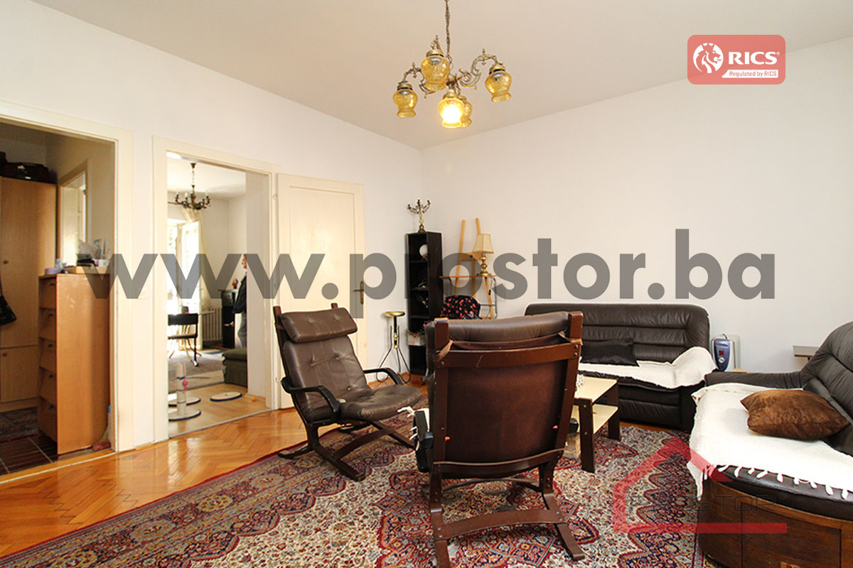 Prodaje se komforan dvosoban stan površine cca. 65m2 (prema navodima vlasnika) smješten na prvom spratu stambene zgrade u ulici Alekse Šantića u centralnom dijelu Sarajeva. Zgrada u kojoj je smještena predmetna nekretnina izgrađena je 1920-ih godina. Stan u posljednje vrijeme nije prolazio kroz velike adaptacije pa se nudi mogućnost budućim kupcima da ga preurede i adaptiraju prema vlastitim preferencijama.