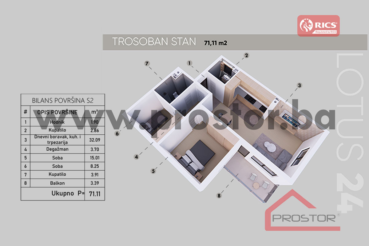 NOVOGRADNJA LOTUS 24, NEDŽARIĆI! Savremeni trosoban stan sa prostranim balkonom i dvostranom orijentacijom, nova stambeno-poslovna zgrada na odličnoj lokaciji – POPUST DO 5%!