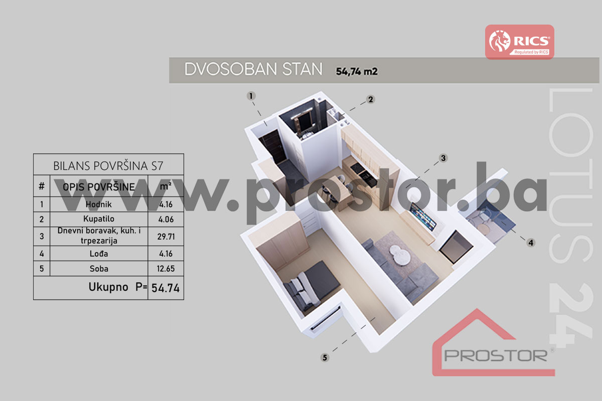 Predstavljamo Vam komforan dvosoban stan u novom stambeno-poslovnom objektu "LOTUS 24" u neposrednoj blizini glavne gradske saobraćajnice. Stan se nalazi na etaži od trećeg do šestog sprata savremene novogradnje i odlikuje se izuzetno lijepim i otvorenim pogledom.